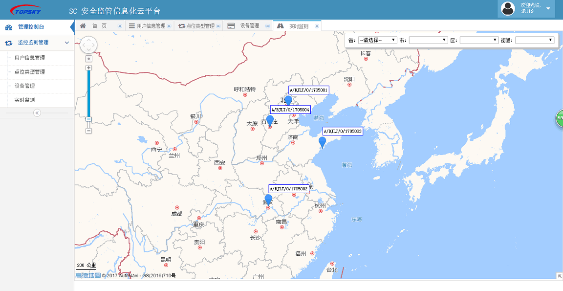 重大危險(xiǎn)源在線監(jiān)控及事故預(yù)警系統(tǒng) PC端(市級) |