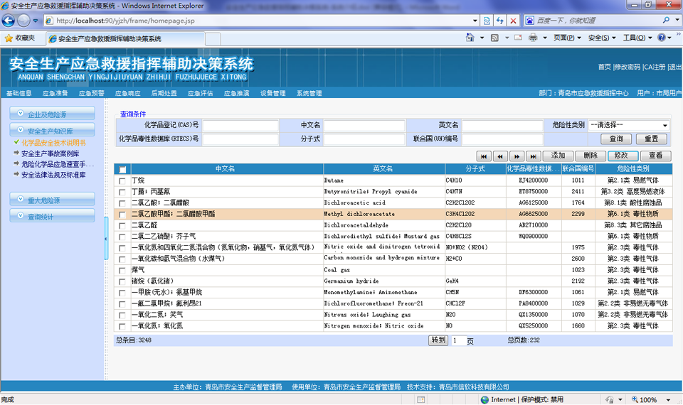 按照【GB 16483-2000 化學(xué)品安全技術(shù)說明書編寫規(guī)定】進(jìn)行危險化學(xué)品信息采編,并導(dǎo)入常見化學(xué)品3000多條數(shù)據(jù)。