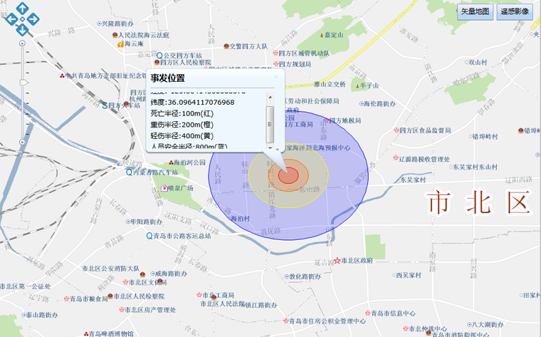 在應(yīng)急管理工作中,對突發(fā)事件的管理是核心和重點。在地理信息系統(tǒng)中,突發(fā)事件管理側(cè)重于與事件有關(guān)的地理信息屬性的管理和在地圖上對事件進行管理和展現(xiàn)。主要功能包括:突發(fā)事件事發(fā)地點的標繪、事故模擬、根據(jù)空間信息和屬性信息查詢突發(fā)事件信息、針對查詢到的突發(fā)事件進行閱覽、查找事件周邊的應(yīng)急資源、調(diào)閱與事件相關(guān)的各種多媒體信息、調(diào)閱與事件相關(guān)的所有的報送信息、調(diào)閱整個事件處置過程的信息等。