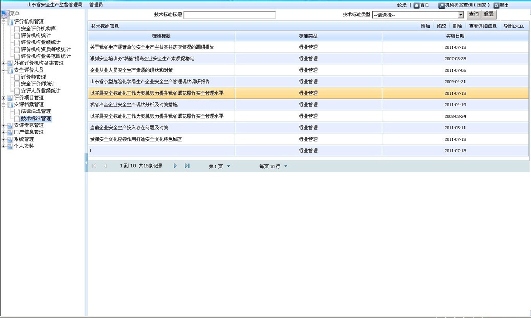 依據(jù)安全評(píng)價(jià)過(guò)程控制上報(bào)的數(shù)據(jù)對(duì)安評(píng)機(jī)構(gòu)業(yè)績(jī)、安全評(píng)價(jià)人員業(yè)績(jī)進(jìn)行智能統(tǒng)計(jì)匯總,并上報(bào)至國(guó)家安監(jiān)局??筛鶕?jù)安全評(píng)價(jià)機(jī)構(gòu)、年份、安全評(píng)價(jià)人員等條件進(jìn)行查詢,查看、導(dǎo)出、打印安評(píng)機(jī)構(gòu)或安全評(píng)價(jià)人員的業(yè)績(jī)表;可以統(tǒng)計(jì)分析比較各安評(píng)機(jī)構(gòu)的業(yè)績(jī),為安全評(píng)價(jià)機(jī)構(gòu)的定期考核提供依據(jù)。