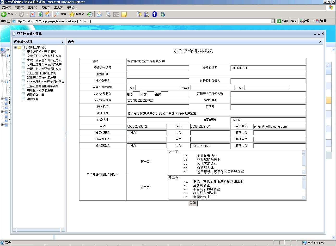 對(duì)安全評(píng)價(jià)機(jī)構(gòu)資質(zhì)及業(yè)務(wù)范圍進(jìn)行監(jiān)管,完成資質(zhì)的申請(qǐng)、變更、補(bǔ)發(fā)、延期、注銷的業(yè)務(wù)辦理,向社會(huì)公布評(píng)價(jià)機(jī)構(gòu)名單,省外評(píng)價(jià)機(jī)構(gòu)的備案,防止監(jiān)管評(píng)價(jià)機(jī)構(gòu)在其許可的業(yè)務(wù)范圍外進(jìn)行安全評(píng)價(jià)活動(dòng),建立全省安全評(píng)價(jià)機(jī)構(gòu)監(jiān)管數(shù)據(jù)庫(kù)。