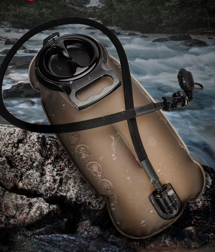單兵攜行水囊有儲(chǔ)水袋、吸水管、飲水噴嘴組成,三部分可拆卸清洗,材料使用TPU食品級(jí)防水材料,具備抑菌殺菌功能,顏色為透明色,儲(chǔ)水袋容積3L,采用雙層網(wǎng)狀電壓融合線,抗壓強(qiáng)度為2000N。另配備可與水囊配套使用背包。