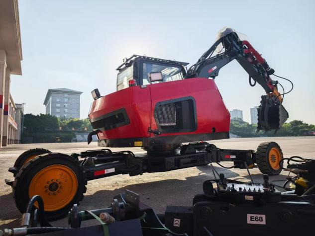 針對(duì)山地、高原等復(fù)雜地形場(chǎng)景,研制了輪腿爪高機(jī)動(dòng)底盤,可實(shí)現(xiàn)復(fù)雜地形危險(xiǎn)環(huán)境下的有人/無人行駛,實(shí)現(xiàn)裝備快速機(jī)動(dòng)、高位越障、陡坡爬越、斜坡作業(yè)等功能。