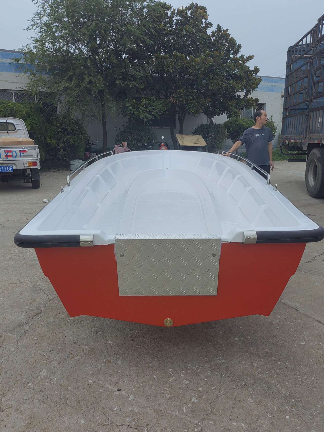 此款沖鋒舟主體材質(zhì)為通用型不飽和聚酯樹脂,增強材料:玻璃纖維及樹脂、膠衣。因此具有高強硬度和 一定的彈性。