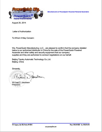 2014年8月26日 ,北京凌天成為 美國Power quick 公司 自動升降機(jī) 一級代理