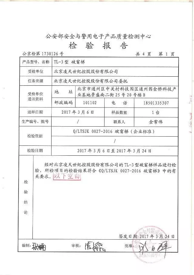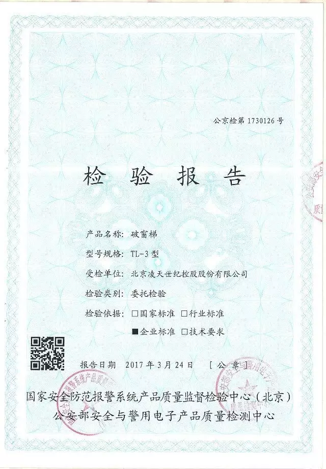 TL-3破窗梯通過公安部檢測機構(gòu)檢驗