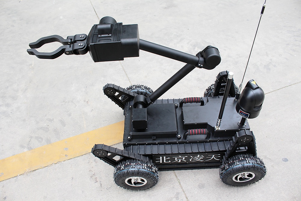 機(jī)械臂部分配備爆炸物銷毀器、瞄準(zhǔn)器,能現(xiàn)場(chǎng)對(duì)爆炸物進(jìn)行摧毀;