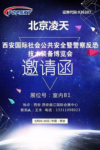 2017年5月23日-25日,西安國(guó)際社會(huì)公共安全暨警察反恐技術(shù)裝備博覽會(huì)將在西安曲江國(guó)際會(huì)展中心盛大召開(kāi)。屆時(shí),北京凌天將集中展示警用無(wú)人化作戰(zhàn)系列裝備、偵查反偵查、安檢排爆、反恐處突等系列高精尖警用裝備。