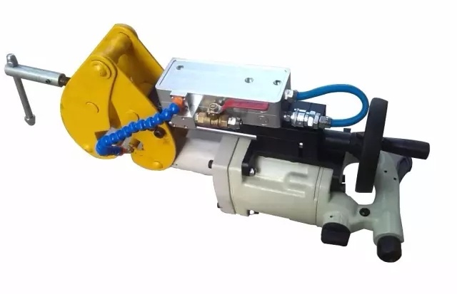 產(chǎn)品介紹: ZQG-8/0.4 氣動鋼軌鉆適用于15kg/m-30Kg/m各種鋼軌軌型鉆孔作業(yè)。整體結(jié)構(gòu)緊湊,質(zhì)量輕、操作靈活、夾具裝置有自鎖功能,定位準確、鉆孔精度高。采用空心鉆頭、也可裝卡麻花鉆頭,鉆孔有自動給水功能,造型美觀、礦山輕軌鉆孔理想設(shè)備。 鋼軌鉆由主機、雙重斷水保護裝置、進口硬質(zhì)合金鋼軌鉆頭、凈化器、張緊裝置等組成,液壓膠管總成將氣源和主機連接起來,經(jīng)過凈化的氣源提供的氣壓驅(qū)動鋼軌鉆投高速鉆進,進行切割。灑水冷卻噴頭和雙重斷水保護裝置起到冷卻和降塵的作用,保護機器正常運轉(zhuǎn)。