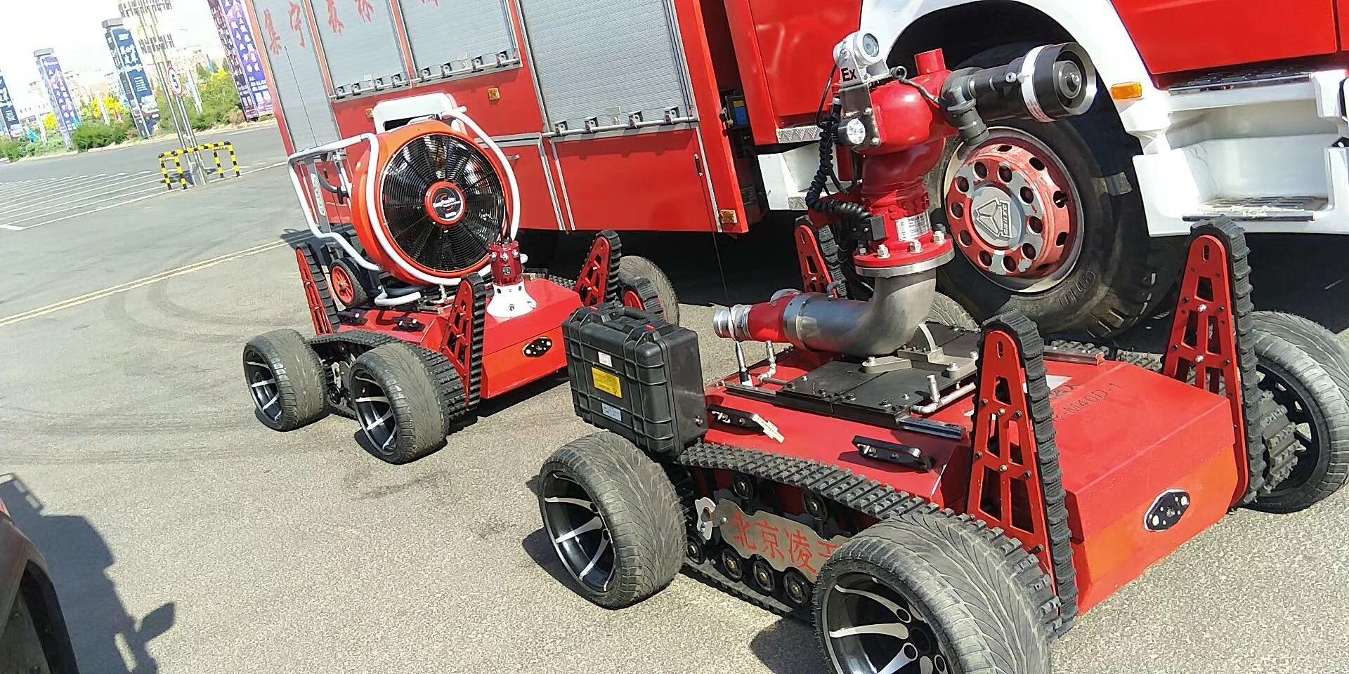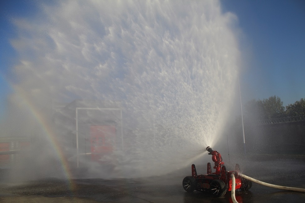消防排煙偵察機(jī)器人采用履帶+擺臂+輪式的底盤(pán)設(shè)計(jì),裝配大功率水驅(qū)動(dòng)排煙機(jī)。水霧噴射裝置,形成霧化效果。消防排煙機(jī)器人在救援當(dāng)中可深入災(zāi)害現(xiàn)場(chǎng)執(zhí)行排煙降塵、冷卻、送風(fēng)、降低熱輻射等多種作業(yè)。