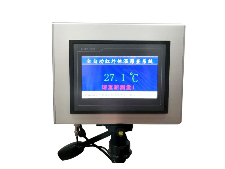 全自動紅外體溫篩查系統(tǒng)是由非接觸式紅外探頭,傳感器,光 學系統(tǒng),智能檢測控制系統(tǒng),高清7寸觸摸顯示屏等部分組成.能夠 在不接觸人體的情況下,依據(jù)人體發(fā)射紅外輻射強度,轉換成實際 的溫度數(shù)值,并通過人機交互界面進行顯示和報警.高清屏幕顯示, 可保證測量結果清晰可見,高溫聲光報警有助于工作人員快速篩 查可疑人員;該產品可以同三腳架搭配 使用,方便攜帶和快速部署,可應用于機 場、港口、車站、學校、賓館和醫(yī)院等 公共場所的體溫篩檢;