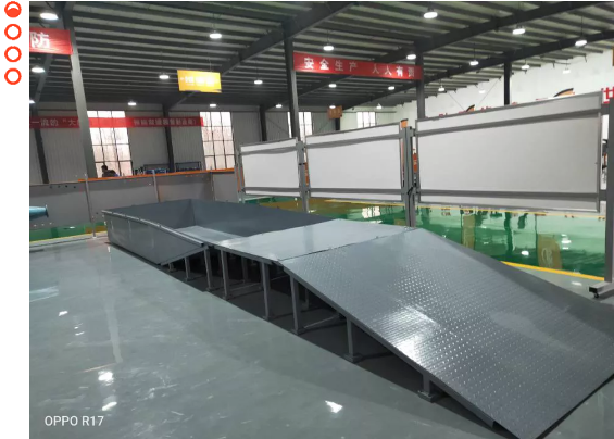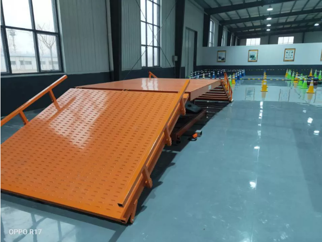 特種機(jī)器人爬坡性能檢測裝置可用于各種特種機(jī)器人爬坡、側(cè)傾倒、爬樓梯的性能測試。表面烤漆,整體防銹。整體分為兩側(cè)不同的測試板塊,一側(cè)為爬坡與側(cè)傾倒測試板,表面為標(biāo)準(zhǔn)防滑板,防滑板底部有方管加固架,保證板面強(qiáng)度。 另一側(cè)為爬樓梯測試板,臺階尺寸根據(jù)相關(guān)檢測標(biāo)準(zhǔn)制定。中間為可升降平臺,可調(diào)節(jié)不同的高度,從而滿足兩側(cè)邊測試板尺寸要求。