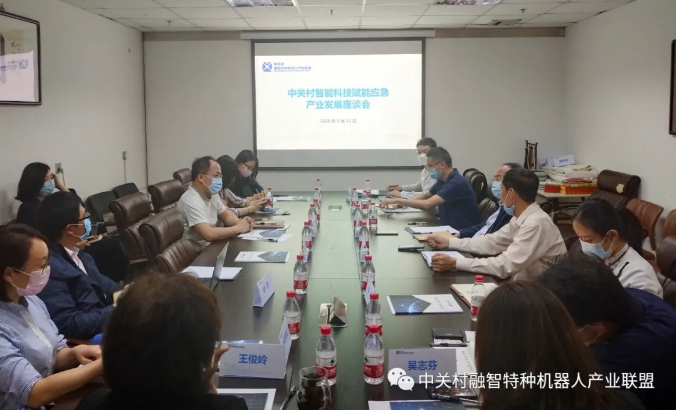 中關(guān)村管委會產(chǎn)業(yè)發(fā)展處研調(diào)員陳星、楊璇,專程到會上指導(dǎo),并與參會單位負(fù)責(zé)人,就特種機(jī)器人產(chǎn)業(yè)如何賦能社會應(yīng)急需求,展開了熱烈的討論。