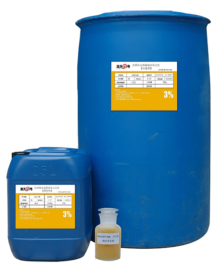 該滅火劑的各項性能指標(biāo)符合GB15308-2006《水成膜泡沫滅火劑》的要求。按與水體積混合比分為3%AFFF (3: 97)和6%AFFF(6:94)兩種。該滅火劑通過比例混合經(jīng)泡沫產(chǎn)生裝置可以均勻細膩的泡沫。該滅火劑是目前低倍數(shù)泡沫滅火劑中滅火效率最高、滅火速度最快的一-種滅火劑,它具有多種使用形式,可以適用于各種低倍數(shù)泡沫產(chǎn)生系統(tǒng)和泡沫滅火器中使用,經(jīng)國家權(quán)威部門檢測對人體無毒無刺激,腐蝕性低,該滅火劑不但徹底解決了環(huán)境污染問題而且儲存期長等特點。