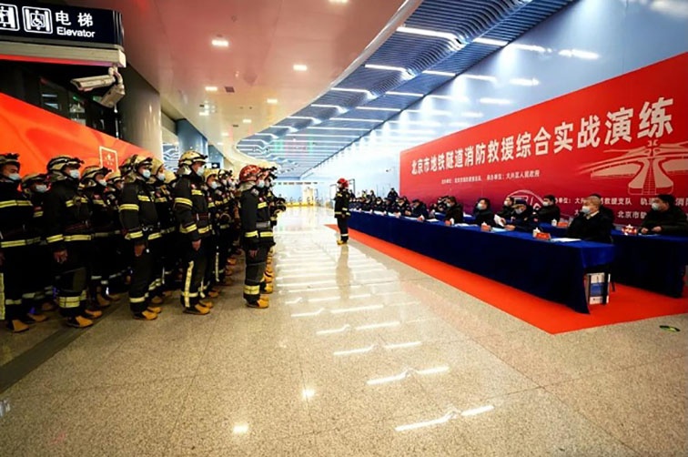 為全力做好2022年春運(yùn)服務(wù)保障工作,防范化解重大安全風(fēng)險,聚焦“全災(zāi)種、大應(yīng)急”救援需要和地鐵隧道火災(zāi)滅火救援處置能力,1月21日凌晨,北京市全要素地鐵隧道火災(zāi)滅火救援綜合實(shí)戰(zhàn)演練在北京地鐵大興機(jī)場線大興新城地鐵站開展。整個演練調(diào)集了10個消防支隊(duì)、52部消防車、248名消防救援人員參與。北京凌天2臺消防內(nèi)攻偵察機(jī)器人參與到此次演練中。