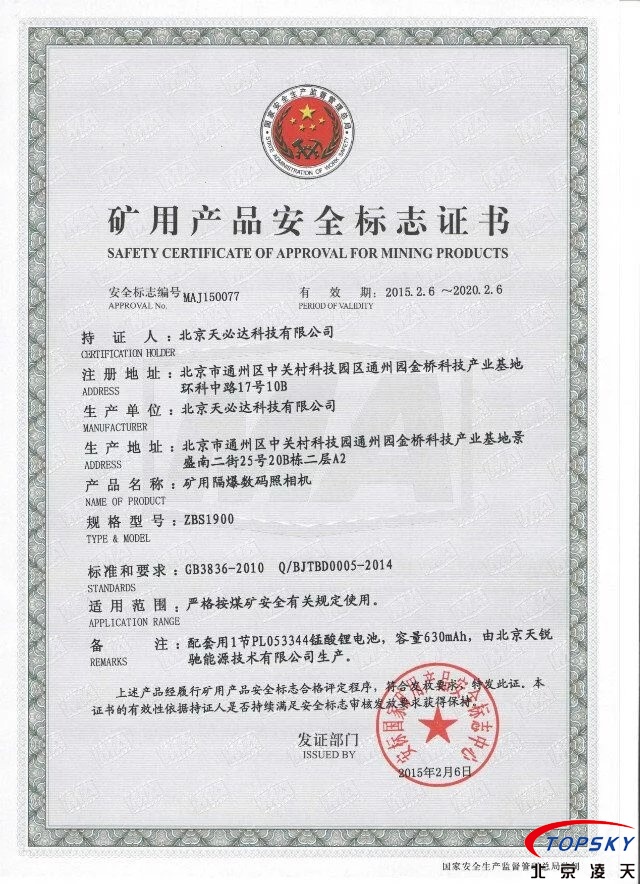 同時具備化工防爆、煤礦防爆、煤安認證等權威認證,保證設備的安全性.