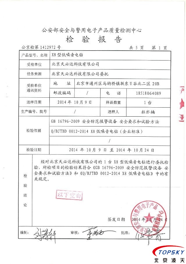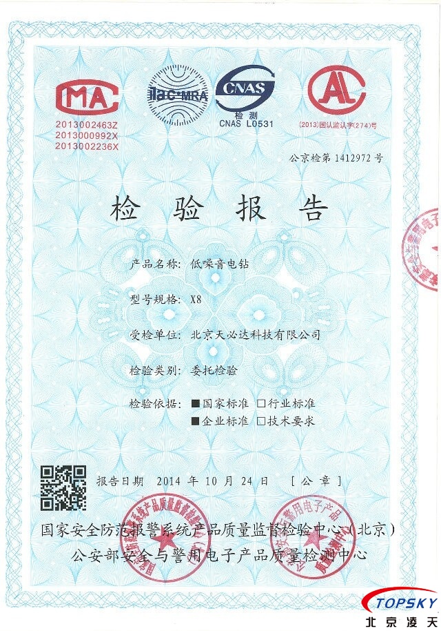 X8靜音電鉆 通過公安部權(quán)威機(jī)構(gòu)檢測(cè)