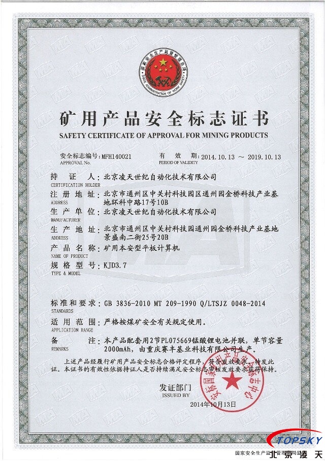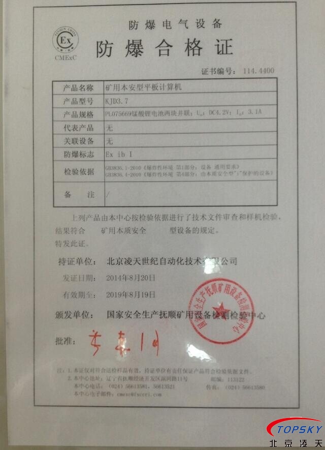 【云安通】KJD3.7防爆移動(dòng)執(zhí)法終端(本安平板計(jì)算機(jī)) 技術(shù)完成單位:北京凌天世紀(jì)自動(dòng)化技術(shù)有限公司 |