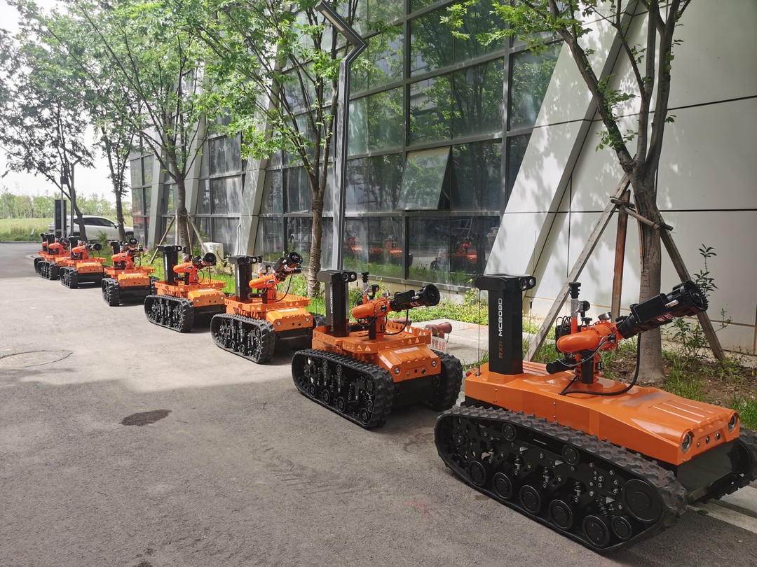 1300底盤主要是用來搭載其它智能裝備,如機(jī)械臂、云臺(tái)、消防炮等,底盤采用履帶結(jié)構(gòu),采用前后4擺臂+履帶的結(jié)構(gòu)形式,履帶和擺臂適合復(fù)雜地形,可以提高越障性能??晒ぷ饔趷毫迎h(huán)境當(dāng)中,能適應(yīng)各種地形快速作戰(zhàn)部署。
