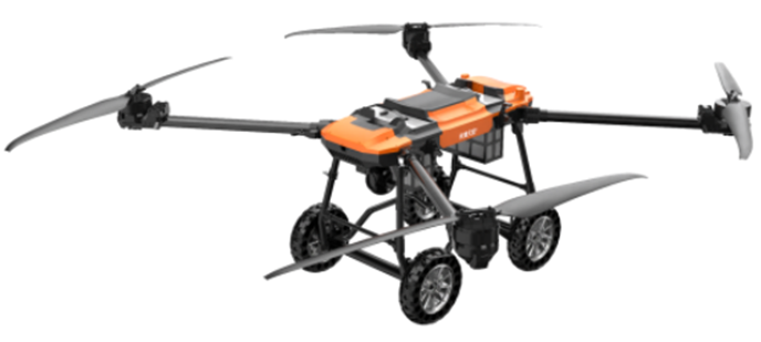本無人機為北京凌天智能裝備集團研發(fā)的多用途陸空兩棲無人機平臺,采用四旋翼機身設計,載重大,續(xù)航長,并且機體折疊標準化負載接口、集成航電系統(tǒng),還支持選配雷達避障系統(tǒng)。同時,該無人機具備陸空兩棲功能,可以在地面行駛,行走系統(tǒng)可快拆。滿足消防滅火、應急教援、物資運輸、環(huán)境監(jiān)測等不同場是的行業(yè)應用。