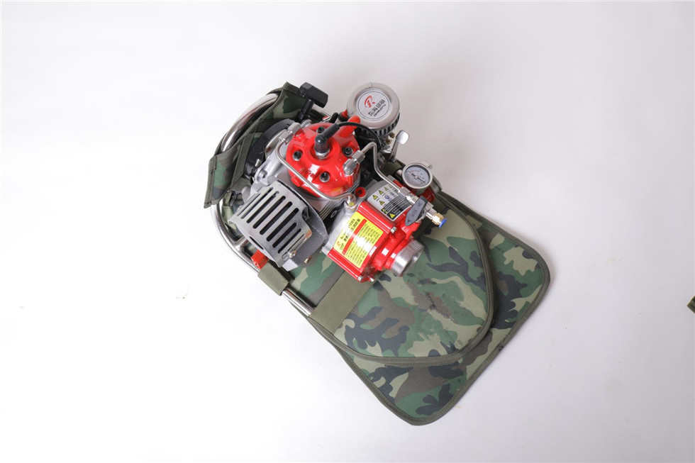 ⑿配有兩套專(zhuān)用水泵和油箱的雙肩高檔背包,更方便攜帶和翻山越嶺的行軍,此背包可以快速拆卸,避免背帶系統(tǒng)接觸水源,防止消防員背負(fù)時(shí)弄濕衣服,冬季可減少衣服和背包結(jié)冰的幾率。
