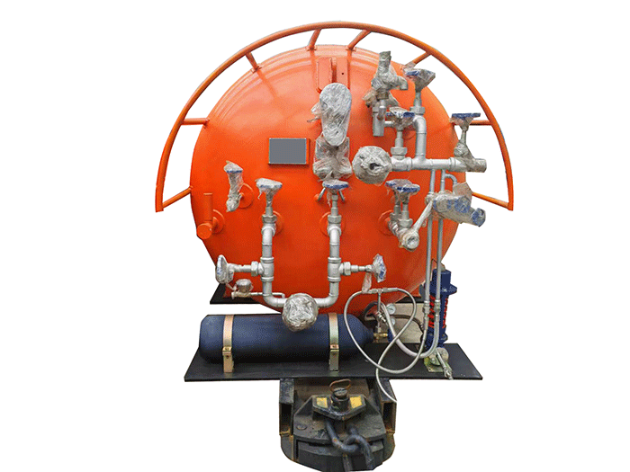 液態(tài)二氧化碳滅火裝置,采用平板車為運載平臺,搭載液態(tài)二氧化碳滅火模塊,采用液態(tài)二氧化碳為滅火劑,運輸至井下火區(qū)近附,經(jīng)自增壓調(diào)控系統(tǒng)實現(xiàn)罐內(nèi)穩(wěn)壓,并通過遠距離輸送管路將液體從罐內(nèi)向密閉火區(qū)噴射,利用其急速膨脹氣化和吸熱效率高的物理特性,可實現(xiàn)惰性降氧,吸熱降溫,吸附阻化等功能,從而可快速進行井下煤層自燃火災(zāi)的預(yù)防與撲滅等。