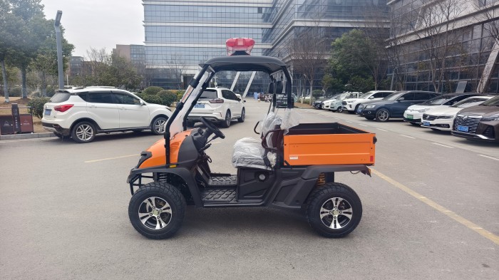 | 軸距1620mm最小離地間隙260mm整車整備質量390kg最大技術質量690kg最高車速50km/h制動器型式(前/后)盤式盤式驅動方式后輪驅動懸掛方式前/后前麥弗遜、后雙臂傳動方式軸傳動后貨箱尺寸711x1210x337 35° |