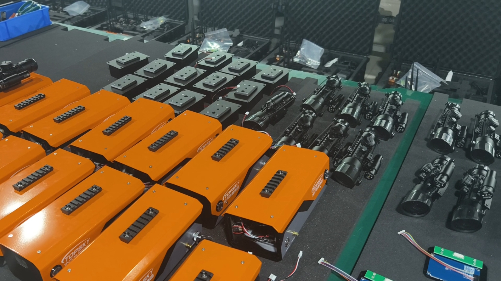 3、激光發(fā)射器監(jiān)測距離105米,目標(biāo)表面紅色激光點(diǎn)顯示。