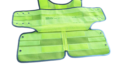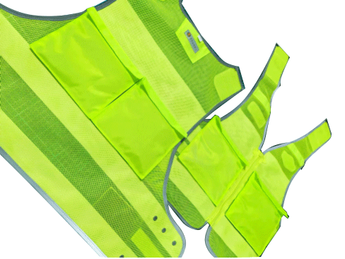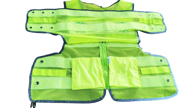 具有整潔美觀,平服的特點,線路規(guī)整,左右對稱,無開線、斷線、跳線、毛露、線頭、污漬、殘疵。產(chǎn)品基底顏色為熒光黃色;反光帶顏色為銀白色;縫紉線顏色應與縫合部位的基底材料或反光材料顏色相匹配;前后晶格標識可絲印定制文字
