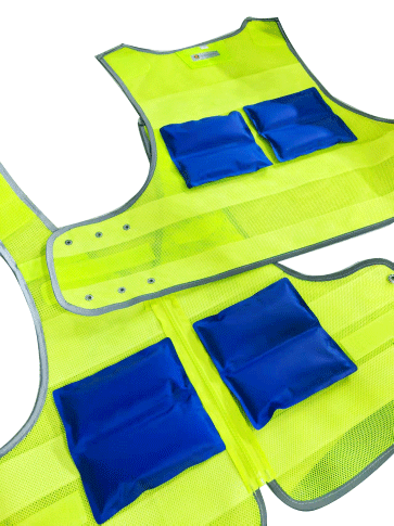 溫控警用背心(低溫型)為前開襟馬甲式樣,開襟用拉鏈拉開,前后身分別具有兩道橫向反光帶;前身胸部左右分別綴釘胸微、警號錦絲搭扣帶絨面、對講機袢、前后身兩側(cè)用錦絲搭扣及銅制四合扣連接,針對不同腰圍三檔調(diào)節(jié)肥瘦;可根據(jù)不同身高調(diào)節(jié)長短