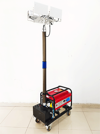 3.可直接使用發(fā)電機組供電,也可接通220V市電長時間照明;采用發(fā)電機組供電次注滿燃油連續(xù)工作時間可達8小時以上。