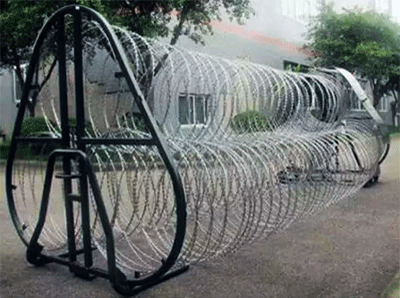 刀片鋒利,阻隔性強(qiáng),不借助器械難以攀爬、翻越。整體結(jié)構(gòu)穩(wěn)定,兩端為支撐框架結(jié)構(gòu),伸縮網(wǎng)和框架一體式聯(lián)接。部分產(chǎn)品底部可能帶有橡膠滾輪,可萬(wàn)向調(diào)節(jié)推動(dòng),移動(dòng)方便。