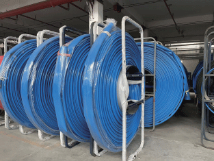 礦用高壓排水軟管采用一次性共擠成型工藝,由TPU內(nèi)襯、編織層和TPU覆蓋層組成。TPU覆蓋層阻燃、抗靜電;編織層內(nèi)含有抗靜電導(dǎo)線,TPU內(nèi)襯可通過水、泡沫液、含油或弱酸堿性等液態(tài)介質(zhì)。這種結(jié)構(gòu)使得軟管重量輕、承壓高、質(zhì)地柔軟、可卷盤、操作方便、鋪設(shè)及撤收機動靈活。
