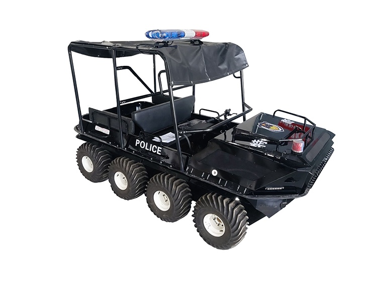 在復(fù)雜惡劣的地形條件和自然環(huán)境下,水陸兩棲全地形車可以讓搜救隊員和攜帶的救援裝備快速到達救援現(xiàn)場,減少徒步帶來提供消耗,完成最后一公里最好五分鐘緊急救援任務(wù)。水陸兩棲全地形車可配備點到絞盤、救援擔架組件、探照燈、警示燈、警報器、脫鉤、破拆工具等裝備, 給救援團隊提供救援保障,更安全的解救傷員和疏散群眾。