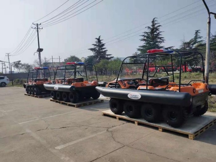 在復(fù)雜惡劣的地形條件和自然環(huán)境下,水陸兩棲全地形車可以讓搜救隊(duì)員和攜帶的救援裝備快速到達(dá)救援現(xiàn)場,減少徒步帶來提供消耗,完成最后一公里最好五分鐘緊急救援任務(wù)。水陸兩棲全地形車可配備點(diǎn)到絞盤、救援擔(dān)架組件、探照燈、警示燈、警報(bào)器、脫鉤、破拆工具等裝備, 給救援團(tuán)隊(duì)提供救援保障,更安全的解救傷員和疏散群眾。