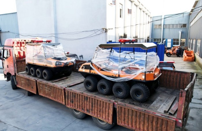 針對水災(zāi)頻發(fā)的地區(qū),水域救援任務(wù)必不可少。但往往洪澇災(zāi)害、城市內(nèi)澇往往伴隨著惡劣的天氣和崎嶇的地形,沖鋒舟需要多次搭載不同交通工具并數(shù)次轉(zhuǎn)移,水陸兩棲全地形車可以輕松通過水淹、泥濘、沼澤等環(huán)境,無需人力搬運(yùn),實(shí)現(xiàn)陸地駕駛和水中行走自由切換,以最快的時(shí)效抵達(dá)現(xiàn)場實(shí)施救援。