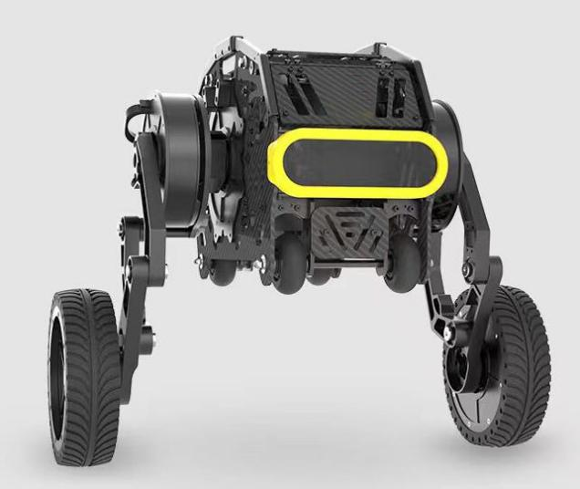 本款雙足機(jī)器人是一種足部裝有動(dòng)力輪子的雙足平衡式移動(dòng)機(jī)器人。這臺(tái)機(jī)器人可以將輪式機(jī)器人的速度優(yōu)勢(shì),和足式機(jī)器人的機(jī)動(dòng)越障性能結(jié)合,可以在多地形下高效、靈活的運(yùn)動(dòng)。這種機(jī)器人也是當(dāng)下學(xué)術(shù)研究的熱點(diǎn)。機(jī)器人的腿部和機(jī)體結(jié)構(gòu)由本末科技自主研發(fā)設(shè)計(jì),總共由六個(gè)直驅(qū)型關(guān)節(jié)電機(jī)M1502D驅(qū)動(dòng)。