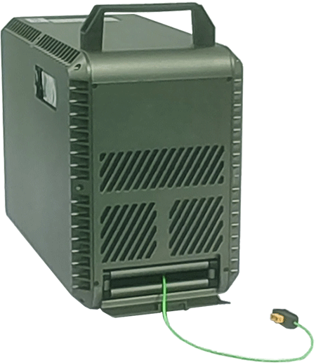 機(jī)載系留電源箱是一種向工作在高空的照明無(wú)人機(jī)提供電力的供電系統(tǒng),系統(tǒng)由系留電源箱、機(jī)載模塊組成,通過地面系留供電系統(tǒng)源源不斷輸送電力,可實(shí)現(xiàn)24小時(shí)不間斷滯空,懸停,解決了常規(guī)無(wú)人機(jī)續(xù)航能力不足的難題,在救災(zāi)搶險(xiǎn),電力搶修等一些突發(fā)情況中發(fā)揮了重要作用。