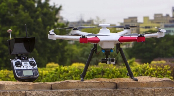 執(zhí)法監(jiān)察無人機由飛行器,相機,云臺,動力系統(tǒng),飛行控制系統(tǒng),遙控接收系統(tǒng),GPS 通信設(shè)備構(gòu)成。飛行控制系統(tǒng)內(nèi)置于飛行器機身內(nèi)。遙控接收系統(tǒng)通信頻率為 5.8GHz,接收機內(nèi)置于飛行器機身內(nèi)。飛行器內(nèi)置GPS模塊構(gòu)成,用于視頻圖像傳輸。