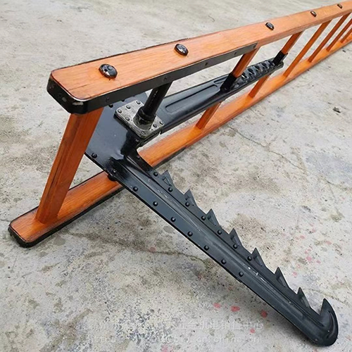 梯蹬與側(cè)板緊密吻合,無松動和加楔。金屬零件和竹質(zhì)零件緊窆粘合,無補塞。緊固件垂直旋緊,沒有突出的釘頭鋒口和毛刺等缺陷。鉚釘緊固并呈平整半圓頭。消防梯外表面光滑無毛刺,表面涂有不導電的涂料保護,竹表面呈黃色,金屬零件使鋒并涂有黑色磁漆。涂料表面光亮,均勻,無漏涂、流痕和影外表面質(zhì)量的缺陷。掛鉤梯的展開和縮合靈活可靠,無任何卡阻現(xiàn)象,定位裝置牢固可靠。
