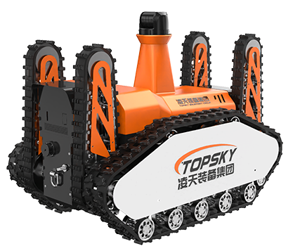 車體設(shè)有擺臂,可越過(guò)垂直700mm障礙,跨越1米的壕溝
