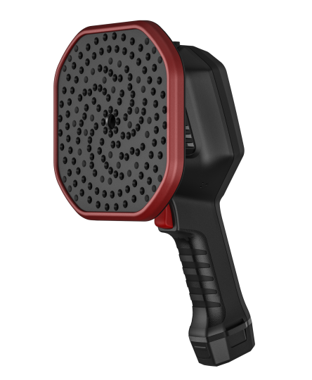 本產(chǎn)品是一款手持式的工業(yè)聲學(xué)成像儀,廣泛應(yīng)用于電力局放,帶壓或真空條件下的氣體泄漏檢測、氣密性檢測、設(shè)備異響定位等多種場景。儀器利用麥克風(fēng)陣列波束形成技術(shù)獲取聲源分布數(shù)據(jù),并配合高清攝像頭實(shí)時(shí)采集視頻畫面,通過將聲源分布數(shù)據(jù)同視頻圖像進(jìn)行聲像融合,把變化的聲源動(dòng)態(tài)的呈現(xiàn)在顯示屏上。 可以幫助現(xiàn)場巡檢人員快速定位故障,提供處置依據(jù)。